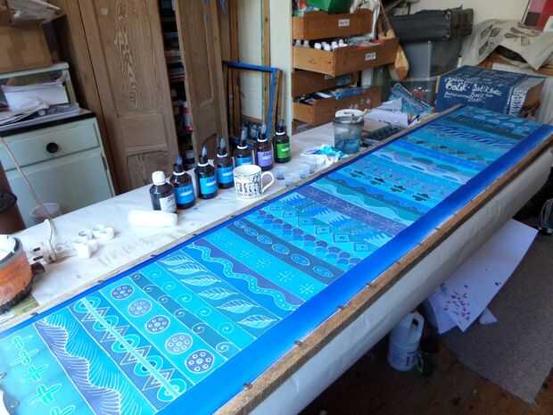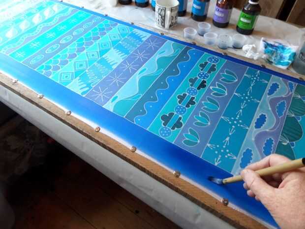 He estado trabajando con cera como un medio para decorar a tela desde la escuela de arte, hace ahora unos 30 años! Mi interés me ha llevado a estudiar en Indonesia y compartirlo es mágica con muchos estudiantes en talleres aquí en el Reino Unido.Gust