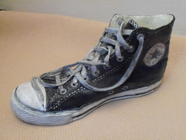 3. no intentes pintar detalles si eres mala una pintura detalle. No pinto los sellos de converse en mi pieza. Realmente impresos todos los detalles de la conversación sobre el papel y había pegado sobre la pieza antes de pintar encima de ella. El resultado fue mil veces mejores que cualquier cosa podría haber gratis dibujado y recomendar la técnica.