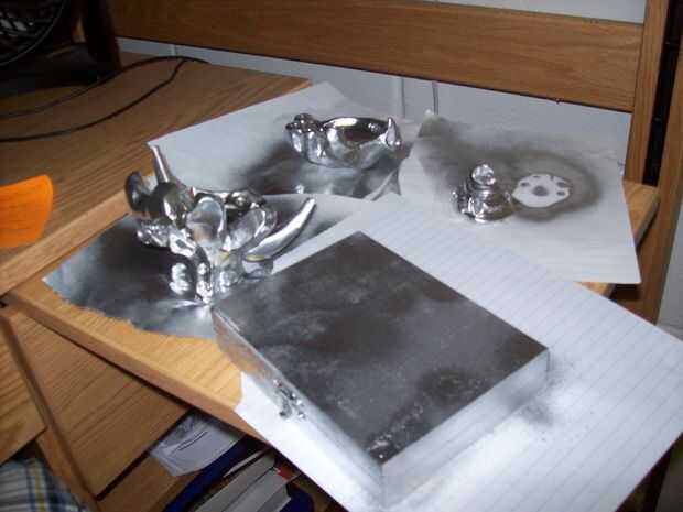 Ahora que tu cerámica es despedido, vaya fuera a un área bien ventilada, colóquese una máscara y empezar a rociar todas las cerámicas, así como la caja. La lata dice que usted debe ser capaz de trabajar con las piezas después de 2 horas, sin embargo conseguir este completo cromado, añadí sobre 3-4 capas de pintura para obtener esa calidad completo reflexiva que estaba buscando. Tarda unas 12 horas para secar completamente.