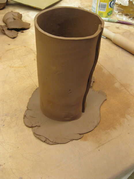 rodillo un pedazo bastante grande de arcilla para colocar el cilindro de corte base.