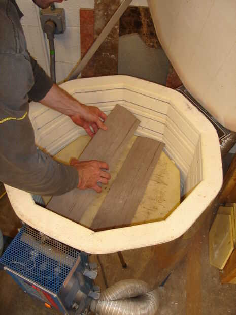 Cuando las piezas de hueso seco, coloque en el horno y fuego a la temperatura deseada del cono. Con la excepción de azulejo negro carbonizado, que es cono que 5 Basaltic Cassius, la mayoría de los colores se logra con disparos entre 04 y 1 con arcilla de la montaña negra y Cassius basálticas.