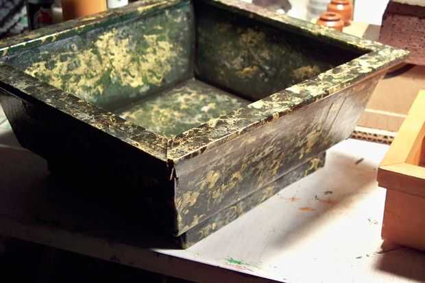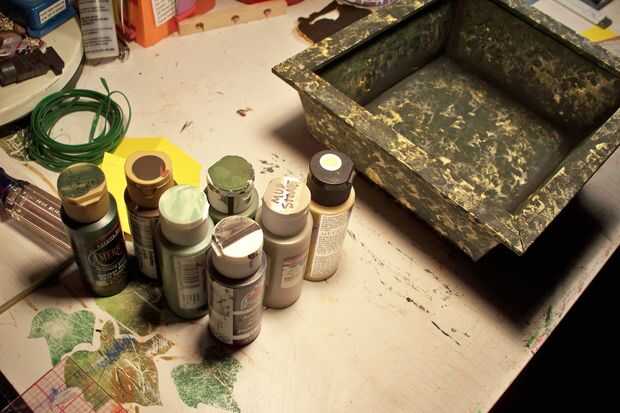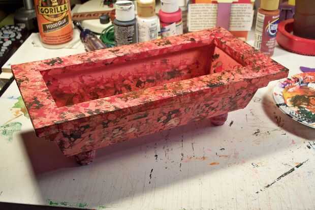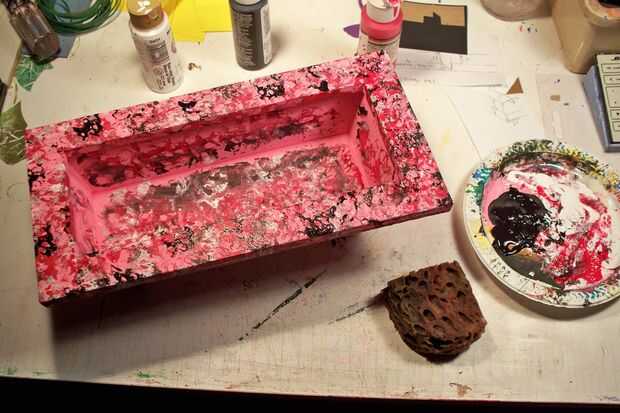 Las pinturas de acrílico para asegurar un secado rápido a base de agua de uso. Al pintar sobre el cartón, la pintura se seca muy rápidamente, y en no más de 5 a 10 minutos se puede proceder a la siguiente etapa. Más de una capa de pintura se necesita para la cobertura total, pero comenzar con una capa de imprimación y luego añadir a la. Pintura decorativa, imitación tratamiento o puede considerarse una capa adicional. Para hacer este último paso, utilizar una esponja de mar cortada a un tamaño manejable.