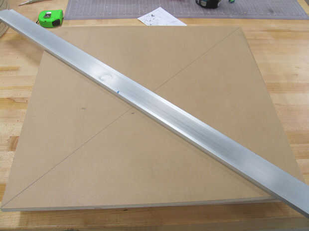 Después de cortar sus cuadrados definen su centro dibujando líneas de esquina a esquina para hacer una X.  Dibujar líneas a través de todo el camino ya que serán muy útiles más adelante cuando taladre los orificios para las clavijas de palo.