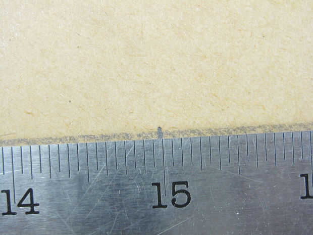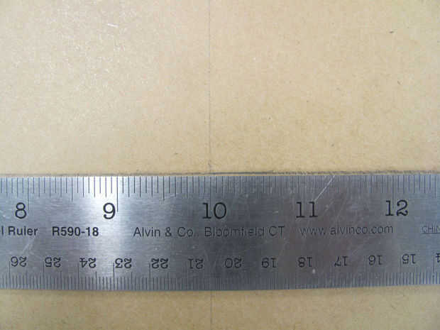 Una vez que has dibujado las líneas en los cuadrados elegir una de las dos líneas a la medida para los agujeros de perno bat.  Más pins de murciélago son 10" aparte, los agujeros que usted necesita hacer son 5" lejos del centro de la cabeza de la rueda a cada lado.  Haga una marca en 5" del centro con un lápiz o un punzón si lo prefiere.  En las imágenes utilicé 10" en la regla como mi centro en vez de medir de 1".  Por esta razón mis marcas son de 5" y 15".