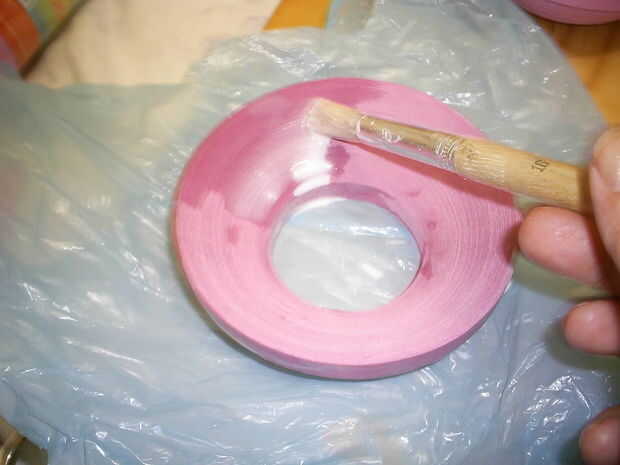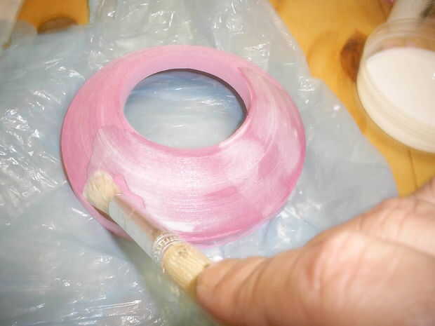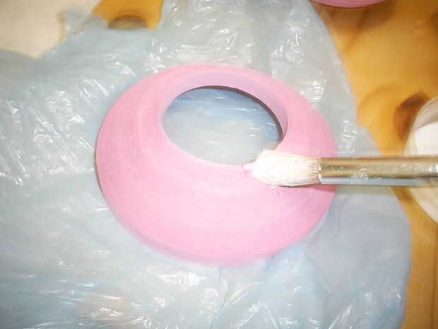 como bien es casi seco, pegue la parte I y parte II, ajuste ajustar el borde de la parte I sobre la parte II, pintar la pieza con la mezcla de pegamento y agua.
