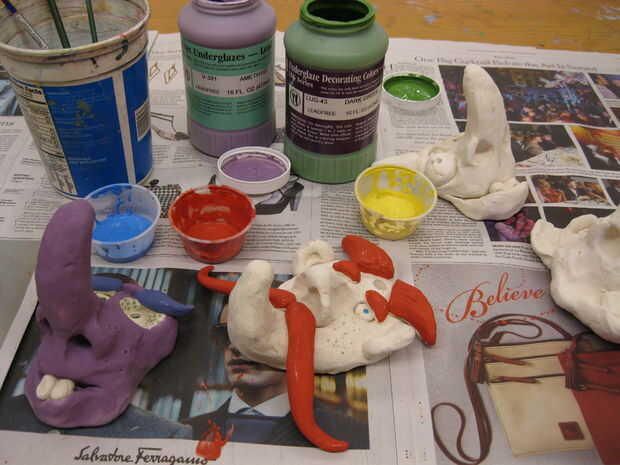 La arcilla tiene que secarse completamente y luego en el horno a la sopa. Use underglazes para decorar los ganchos.
