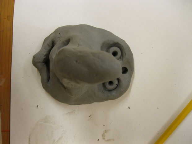 Manipular la arcilla un poco para crear la boca y la barbilla.