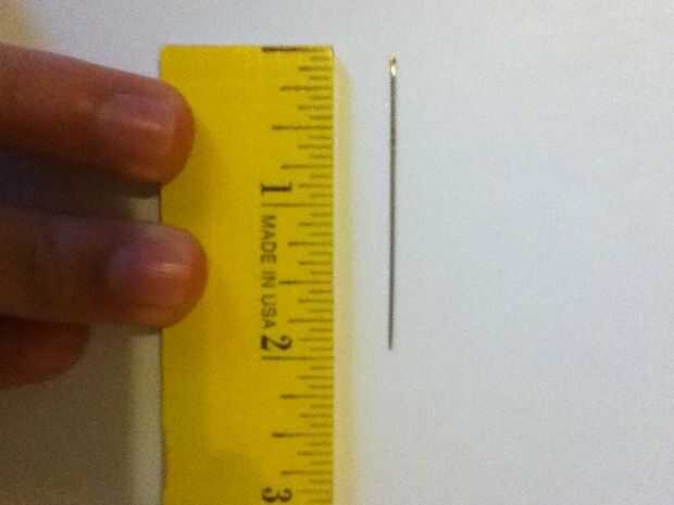 Encontrar una aguja de coser de 2" de largo. Aguja de costura gruesa pero no en grosor