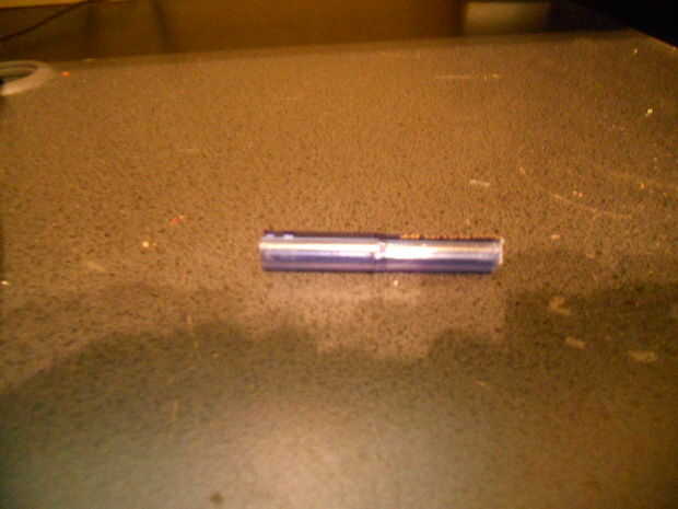Todo lo eliminar de la pluma con la abertura grande. Cortar todas las piezas donde una pelotilla del airsoft no puede caber a través de. Debe verse así.
