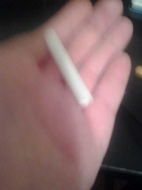 esto es una cerbatana que hice con una pluma vieja y una lata Altoids Smalls. Corte agujeros en ambos lados de la lata, cortar la pluma al tamaño correcto (y también eliminar los componentes de la pluma, lo que es un tubo hueco), y luego grabado en l