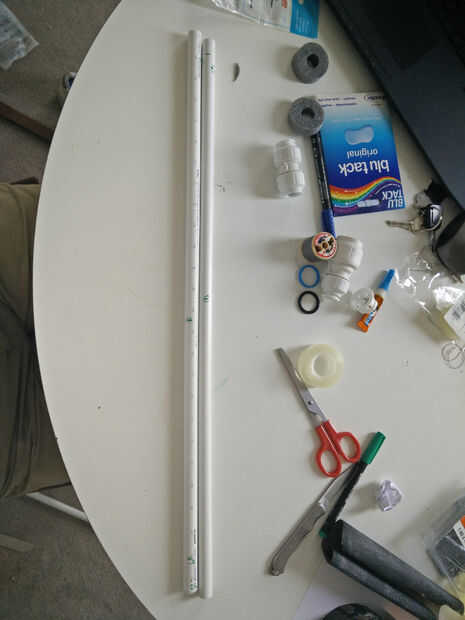 Primero corté dos pedazos de tubo de unos 60 cm (2 pies) de largo. No tengo ningún dispositivo de medición usé una hoja A4 de papel como una longitud conocida (210 * 297 mm). Corté con el cuchillo de pan como una sierra. Usé un cuchillo para limpiar el interior de la tubería después de los cortes para que los dardos aceptar sin problemas y papel de lija para limpiar el exterior de los cortes. Aquellos serán las dos mitades de la cerbatana, para una longitud total de cerca de 120 centímetros o 4 pies. Quería una pistola larga, aunque ellos son más difíciles de manejar y disparar, permiten mayor potencia y precisión y tienen los pulmones grandes. Esta es la longitud máxima autorizada por la FSSA, la asociación francesa para la práctica recreativa cerbatana, así que pensé sería un buen tamaño.