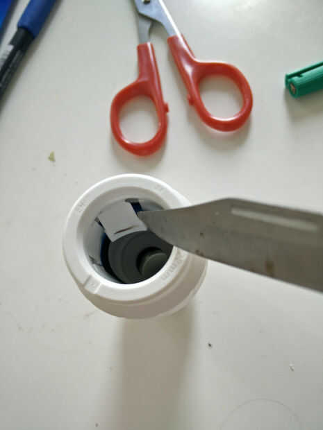 Tomé el reductor y quitado la parte que prensa y varios pedacitos de plástico sueltas así como un anillo o desde el lado ancho para hacer una boquilla limpia. Todo lo demás dejé en el otro lado como quisiera una conexión hermética con la tubería.
