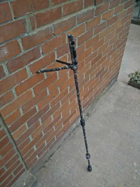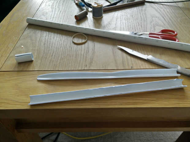 Cortar un trozo del mismo tubo en la mitad y en forma de las mitades con un cuchillo para darles mejor apariencia, luego había cubierto en la misma cinta del conducto como el tubo. Luego cortar una rodaja gruesa de espuma e hicieron cuatro ranuras en ella: dos en el lado poner los pies cuando en el "modo de disparo" y dos en la cara para poder poner los pies cuando en modo"doblado".