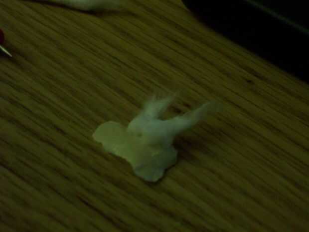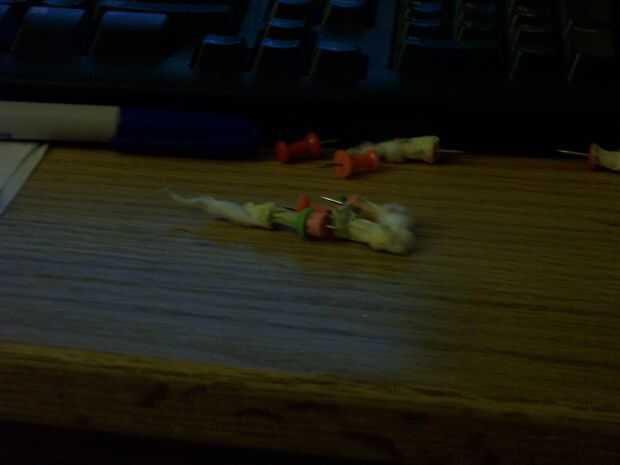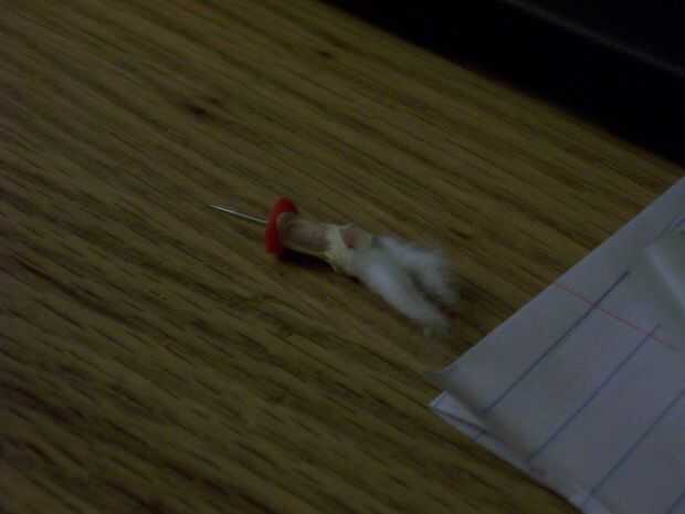 Foto 5-6. Ponga cinta en el borde de la tachuela y pellizque para circunda con el algodón se pegue hacia fuera.