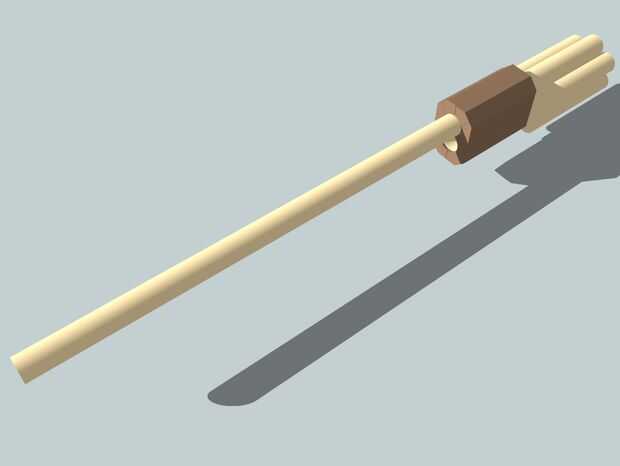 Aquí es cómo se montará, el cañón y el cilindro tienen que resultar perfectamente alineado. Mente, el cañón es la última cosa para pegar en el lugar, por lo que utiliza los tubos libres como guías dentro de los bloques de madera y pega sólo los bloques de madera, sin embargo.
