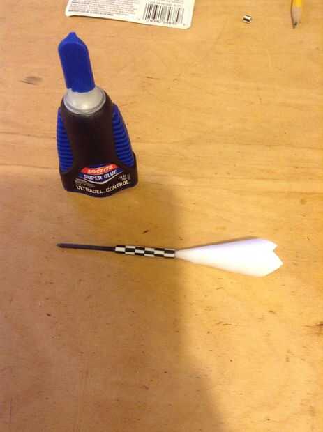Encontré que un ajuste más apretado entre la uña y el grano es muy importante, de lo contrario los granos quebrará el pegamento cuando el dardo golpea algo.