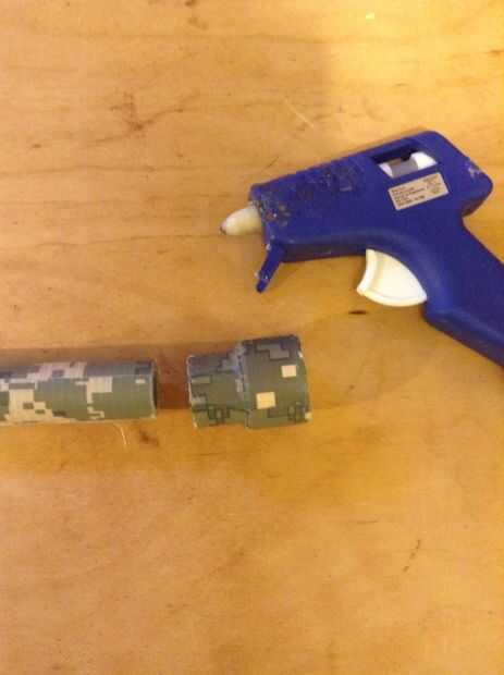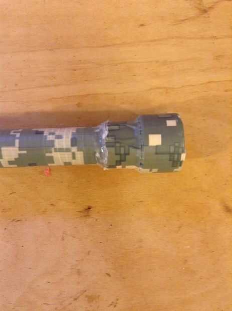 Cubrir el adaptador en la cinta, también. Actuará como portavoz. La boquilla permite que el aire más forzada en el tubo = dardos más rápido.