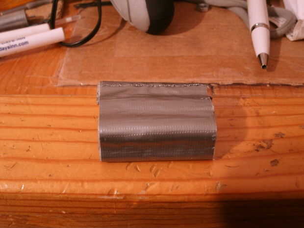Tomar cada uno de los cuerpos de pluma y cada uno de los tubos de conector y les envuelve una vez alrededor con cinta adhesiva con el lado adhesivo hacia fuera. luego presione cada una de las secciones de cinta cubierta juntos y envolver esta con el lado adhesivo de la cinta en. Esto le permite deslizar las piezas en almacenamiento y hacia fuera para usted y usted no tiene que preocuparse de nada que se pegue.