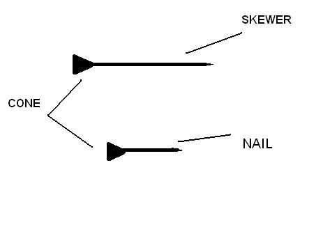 Ahora deslice el clavo o pincho a través del cono de papel (con el extremo pequeño, mover el cono a la derecha hasta el final y luego cinta adhesiva o pegamento en.