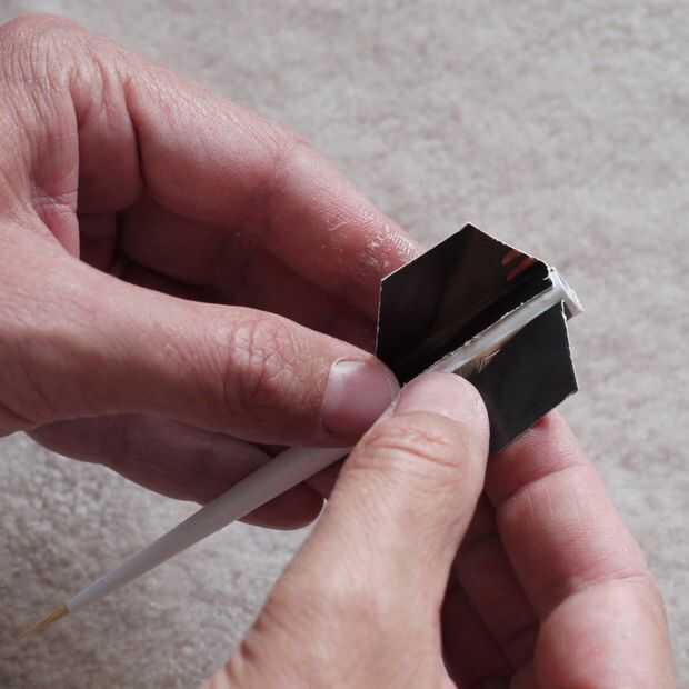 Pegamento en las aletas a lo largo de los pliegues en la parte inferior del dardo.