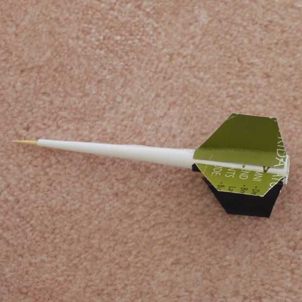 Te recomiendo afiladas puntas de madera para éstos. Empezar por rodar un dardo, con punta, en la forma habitual, pero uso papel de revista más pesado si usted puede conseguirlo. También, el rodillo lo mas ajustado posible, lo que para un dardo estrecho el dardo. (Recuerde que tirando de la herramienta de balanceo mientras sostiene la punta puede apretar el dardo).