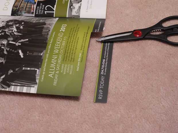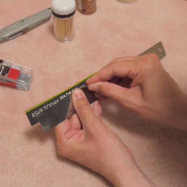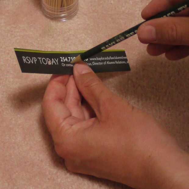 Corte una tira de cartulina (por ejemplo, de una portada de la revista) que mide unos 12 cm. Hacer un agujero cerca de uno de los extremos (por ejemplo, con un perno, clavo o un palillo de dientes). Luego realizar otro agujero 3 cm alejado del primer agujero, el otro 6 cm del primer orificio y la última 9 cm del primer orificio. Agrande los tres últimos orificios (pero no la primera) con un lápiz.