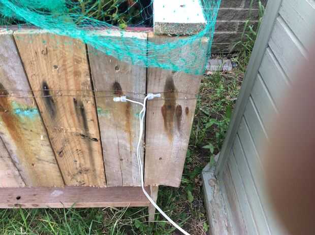 El cable sale de la caja de abajo reduce el riesgo de entrar en el recinto de agua. El cable se cuelga (también reutilizado) en un bucle y se une a los dos cables de cobre con algunos conectores de engarce.