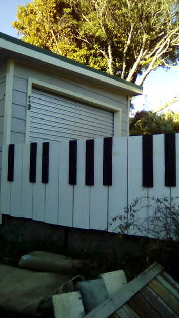 me di cuenta de que algo así se asemejó a un piano vertical pero faltaban las llaves negras (que es una de mis bandas favoritas por lo que no podía dejar de lado) así que corte unas maderas de palet a unas longitudes 50 cm pintados de negro entonces clavó mi humilde opinión