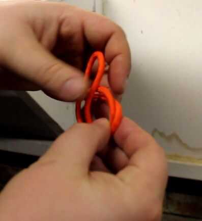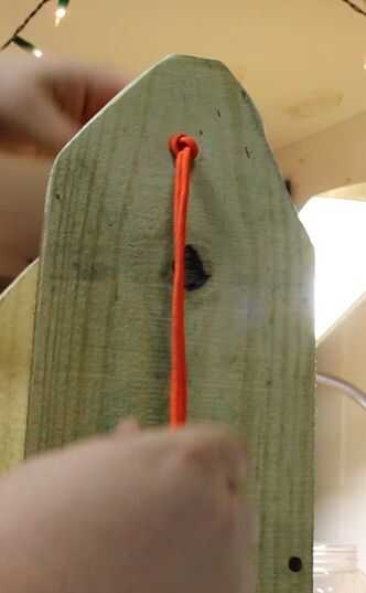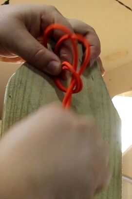 Aproximadamente medí mi paracord por doblar a lo largo y agregar cierta holgura. Esto me da opciones de nudos y también dejarlo utilizable para algo más adelante, debo elegir cambiar el cable hacia fuera. Emparejar los extremos, había doblado el cable hacia abajo y tomó la curva a través del orificio desde el interior. Aquí, he formado un lazo por todo lo alto. Satisfecho con eso, tiró de los extremos de trabajo a través del otro agujero y un nudo. Cualquier holgura izquierda voluntad aquí y allí ser algunos, agravarán con el flex en el cable del peso del bolso/de la carga. Los nudos aquí deben ser suficientes en tamaño para cubrir el agujero y evitar tirando hacia atrás a través de la bolsa.