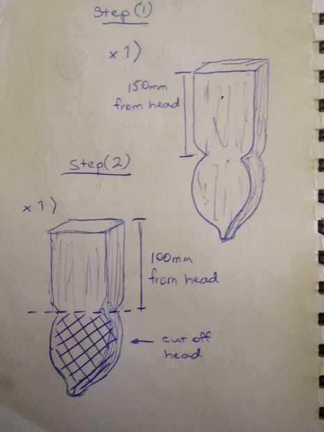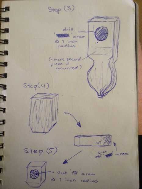 Luego perfore un agujero de una pulgada en cada una de las piezas - (sobre la pieza con el cabezal incluido agujero lo suficientemente alto como para que la segunda pieza se monta en todavía)
