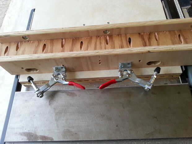 Utilicé una 1/4 broca para tornillos de la abrazadera de palanca y un orificio de 1" Sierra para cortar el agujero para la abrazadera de goma. Usted tendrá que ampliar el orificio de 1" algunos para dejar espacio para la abrazadera mover arriba y abajo. Usted también necesitará Avellane el 1/4" agujeros de montaje en la parte posterior del lado derecho para asegurarse de que los tornillos no toquen la cerca.