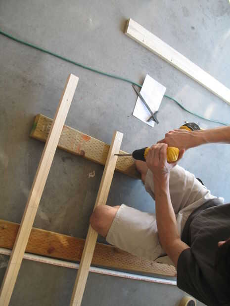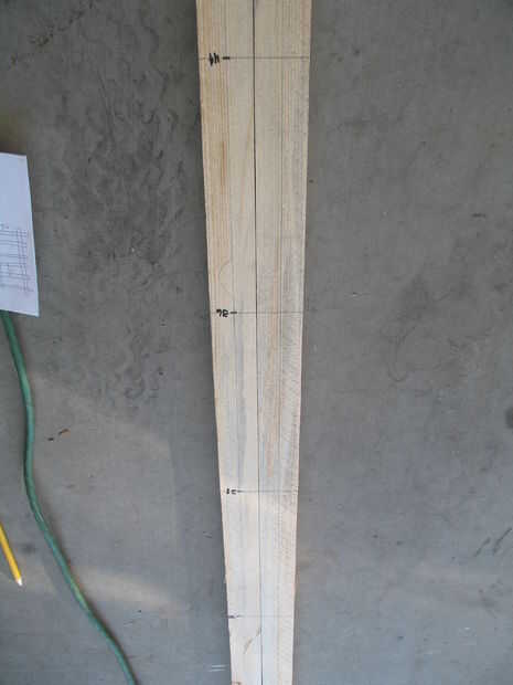 Marque las ubicaciones de cada pieza : pensando a que planeo anterior, marque una línea para indicar que el centro de cada agujero (y ergo del poste) será. Para nosotros, esto fue en el 4, 12, 20, 28, 36 y 44 pulgadas. A continuación, use la primera medida como plantilla y copiar estas ubicaciones en la otra madera.