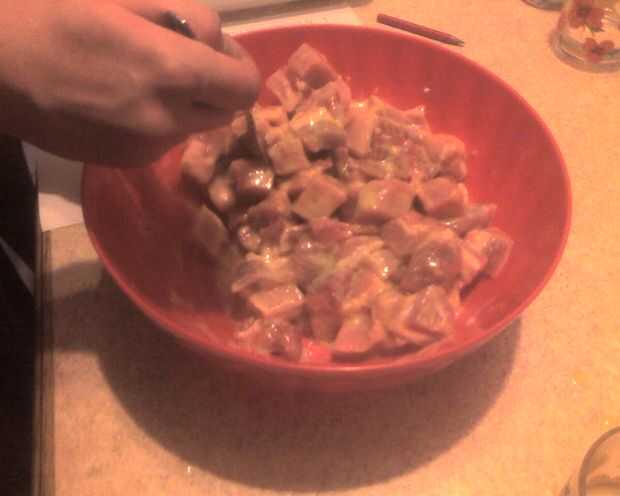 Estos nuggets de pollo caseros tenían la textura correcta y sabor. La salsa agridulce (糖醋酱) es ideal para acompañar casi cualquier plato asiático inspirado! Esta receta es muy fácil. Utilicé una mezcla de 5/6 pechuga de pollo y carne de cerdo picada