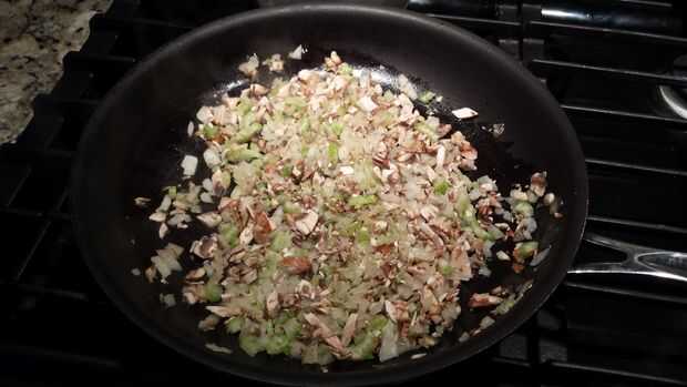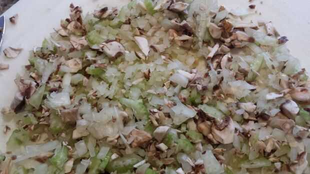1. desmenuzar sus setas, cebollas y apio.