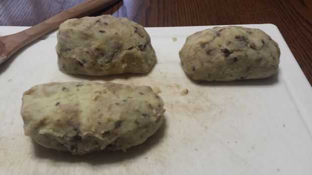 Una vez que los pasos 1-5 se hacen revolver bien y luego moldear tus panes en 3 porciones iguales.