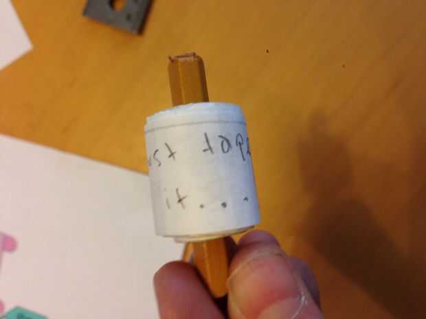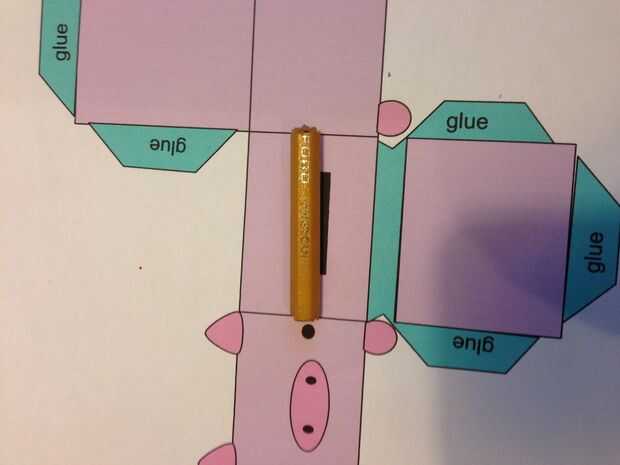Cortar sus hojas de papel en tiras para envolver alrededor del objeto cilíndrico pequeño (uso de la regla). Cinta adhesiva para obtener una tira super larga, luego cinta de un extremo al objeto cilíndrico. Escribir la inspiración en la tira. Pueden ser frases, ideas, fortuna, palabras aleatorias, etc.. Dibujar líneas punteadas entre cada pieza de inspiración (para rasgar o cortar a lo largo). En objeto cilíndrico y coloque un pedazo pequeño de cinta adhesiva para sostenerlo en su lugar mientras trabajas en el cerdo. Medir el lado de su cerdo (aproximadamente 1,10 pulgadas para mí). Corte o un lápiz para que la longitud de la sierra (ninguna extremidad afilada, pero al final del borrador puede permanecer si es necesario). Es muy importante que usted este lápiz que la longitud exacta. Poner el rollo de la inspiración en el lápiz, volveremos a él después del cerdo.