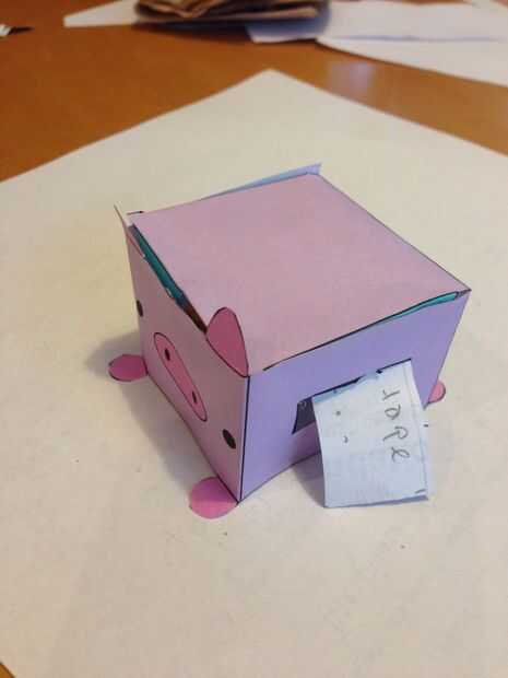Variante: escalar este bebé, hacer la tapa de cierre con velcro y colocar la ranura en la parte superior y tiene un soporte de tejido. Dar el cerdo alas.