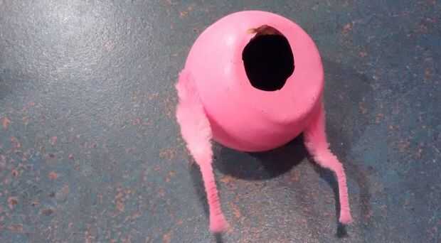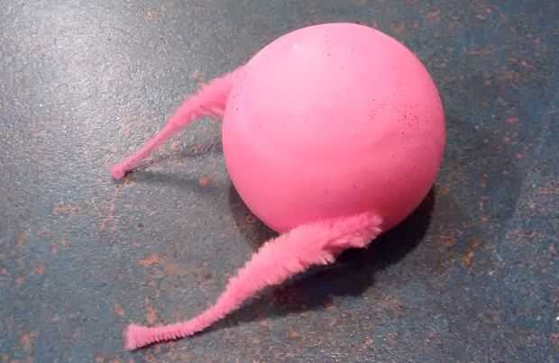 Cortar el globo en dos piezas con la bulbosa parte 1/3 de la longitud. Estirar el globo sobre la pelota de tenis, como se muestra.