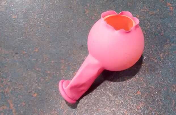 Cortar una rebanada de la pelotita de ping pong y estirar el cuello del globo sobre ella.