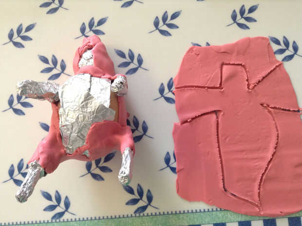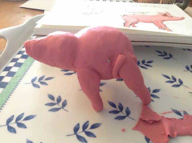 B) cuelgue de arcilla todo guarro y se mezclan en las costuras. Añadir rollos alrededor de las piernas para definir muslos y articulaciones seguras en la parte inferior. Usted puede alisar las juntas con un bolillo o una pequeña negra o aguja de tejer; Usé mis manos y el extremo opuesto de mi herramienta de la aguja. Forma y suave todo el cuerpo hasta que se happyish. No pretenda resultados justas ahora, porque usted será manejo piggy mucho a medida que agrega los datos.