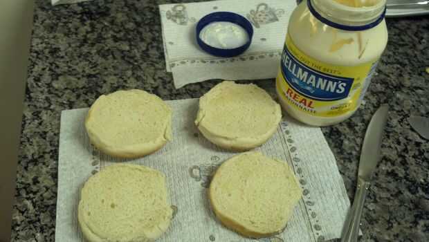 me gusta bollos tostados con mis hamburguesas. Usted puede hacer esto de varias maneras, usted les puede brindar en la parte superior plana, o (lazy huelgas otra vez) la tostadora. Supongo que utilizado... Mantequilla por supuesto. Entonces golpeó em mayo un poco. Si es lo tuyo.