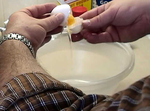 9. mucho gente se agrietará el huevo en el borde del tazón de fuente que puede conducir a pedacitos de la cáscara en el huevo.  Por cierto, si te estás preguntando qué hacer con el yugo, puede ser refrigerado o congelado y más tarde agregó a otra receta que llama para yugos, o hacer como mi perro Goody sugiere y añadir a la alimentación de su perro.