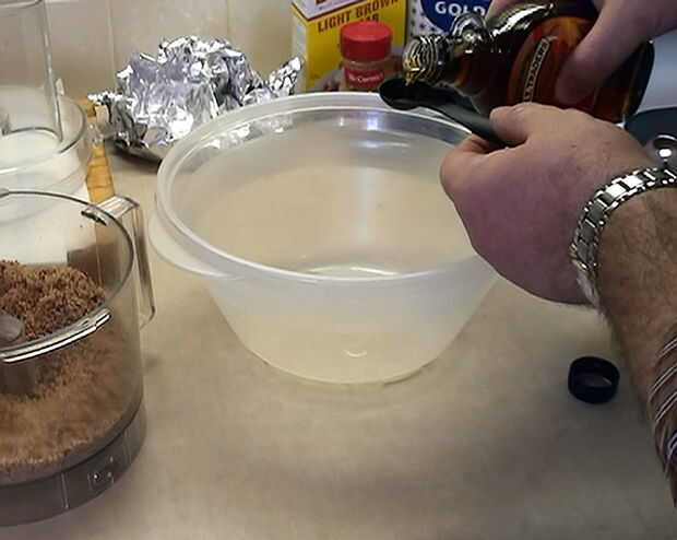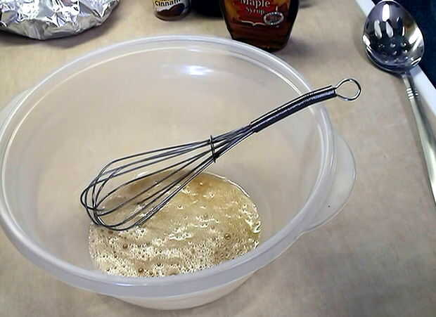Añadir el jarabe de arce y el agua fría y batir los trabajos húmedos hasta que estén espumosos. (Ver fotos)