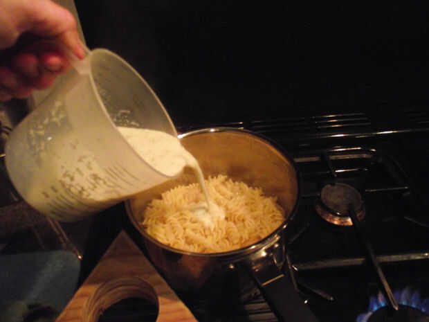 Cerdo picante y tomates con Pasta cremosa (5 / 6 paso)