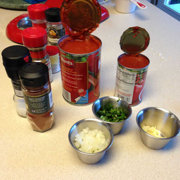 5. agregar la lata de salsa de tomate y pasta de tomate a la cacerola