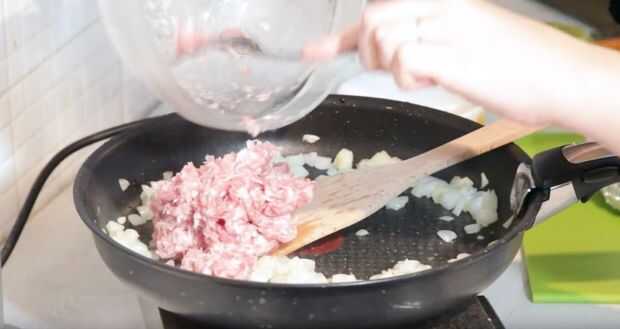 Agregar 270g de carne de salchichas a la cacerola y cocinar a través de
