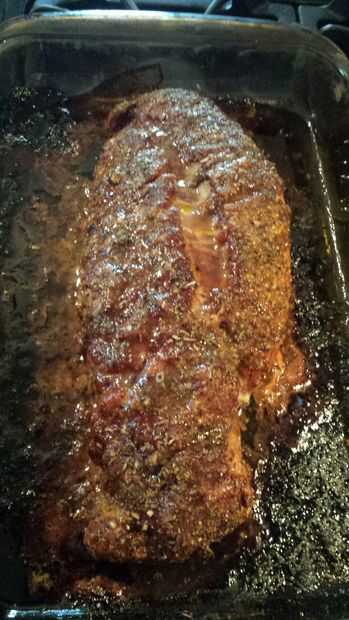 Retirar el lomo y cubierta en papel de aluminio, deje que se cocine en su propio calor para un poco, unos 5 más minutos de cuando usted tira del horno.