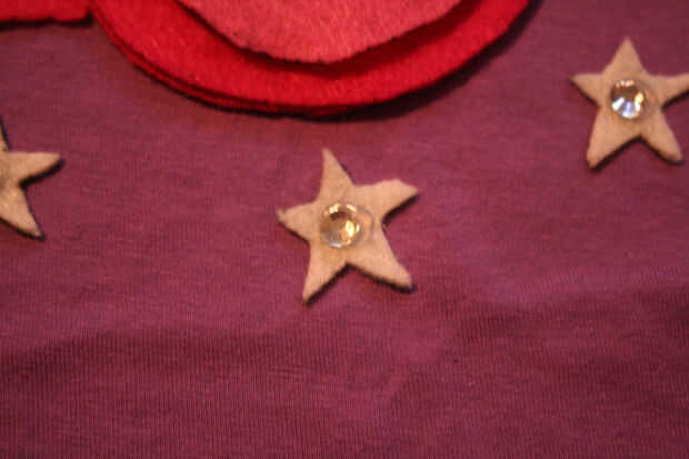 También puede cortar estrellas de fieltro blanco y péguelos en alrededor de la insignia. Mejor aún, usted puede también pegar en pequeño Strass tachas en las estrellas, como yo hice aquí!