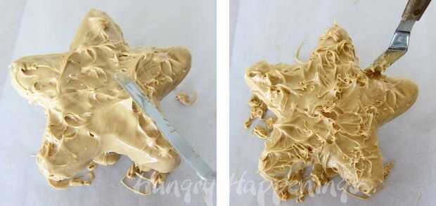 Introduzca una espátula o un cuchillo en el chocolate y tire hacia arriba de crear picos. Si dulce no es lo suficientemente gruesa como para crear picos aún, deje que se endurezca un poco y vuelva a intentarlo. Hacer picos en la parte superior y los lados de la estrella, agregar dulce de azúcar si es necesario.