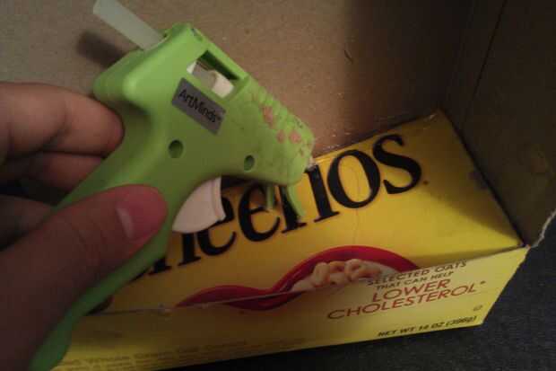 Para hacer la rampa, tome el pedazo de cartón que recortas de la parte delantera de la caja, y cortarlo para obtener una pieza es el mismo ancho que el lado de la caja. A continuación, organizar por lo que es no superior de la pared inferior de la abertura frontal de la caja y es pendiente abajo hacia la abertura de acceso. Por último, caliente encolarla.